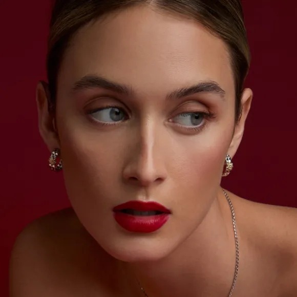 Pendientes Aiora con forma de medio aro de Plata de 1ª Ley (925mm) simulando tachuelas piramidales cuadradas. En la parte central contiene un Eguzkilore bañado en Oro 18kt. (750mm) reciclado. Cierre presión. Medida Aro: alto 20mm y ancho 5mm. Diámetro Eguzkilore: 7mm.
