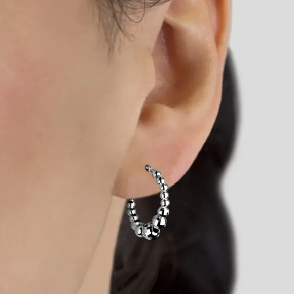 Pendientes de Aro de Plata de 1ª Ley (925mm) formado por bolitas con efecto discoteca bañado en rutenio. Cierre criolla. Diámetro del aro: 20mm.