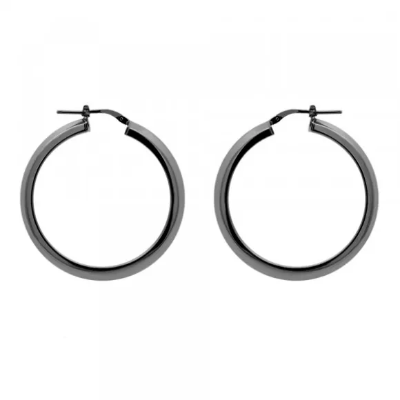 Pendientes de Aro de Plata de 1ª Ley (925mm) cubierta por un baño de rutenio. Cierre criolla. Grosor del aro: 0,5mm. Diámetro del aro: 30mm.