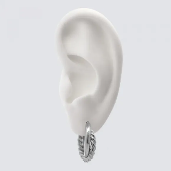 Pendientes de Aro de Plata de 1ª Ley (925mm) formado por dos aros entrelazados, uno liso y el otro efecto enroscado bañados en rutenio. Cierre criolla. Diámetro del aro: 20mm.