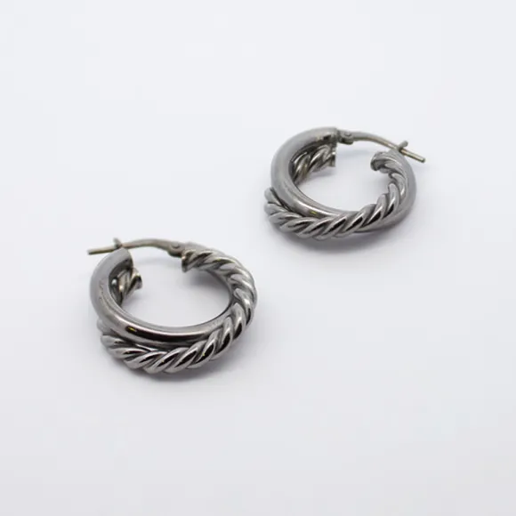 Pendientes Aro Doble Entrelazados en Rutenio 20mm