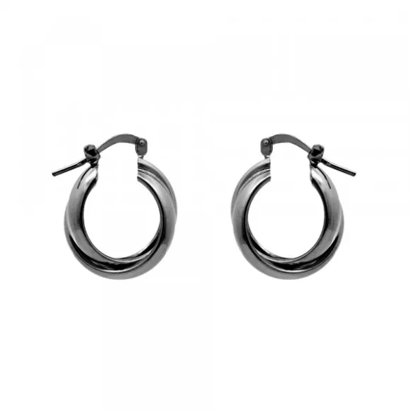 Pendientes Aro Doble Entrelazados Plata Negra 15mm