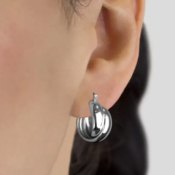 Pendientes de Aro de Plata de 1ª Ley (925mm) formado por dos aros lisos entrelazados bañados en rutenio. Cierre criolla. Diámetro del aro: 15mm.