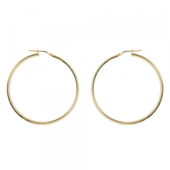 Pendientes de Aro Clásicos de Plata de 1ª Ley (925mm) cubierta por un baño de oro amarillo de 18kt. Cierre criolla. Diámetro del aro: 50mm.