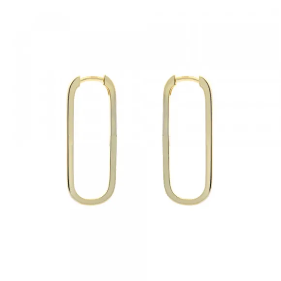 Pendientes de Aro Hoop de Plata de 1ª Ley (925mm) bañado en oro de 18kt. con forma ovalada. Cierre catalán. Medidas del aro: 30mm de largo 12mm de ancho.