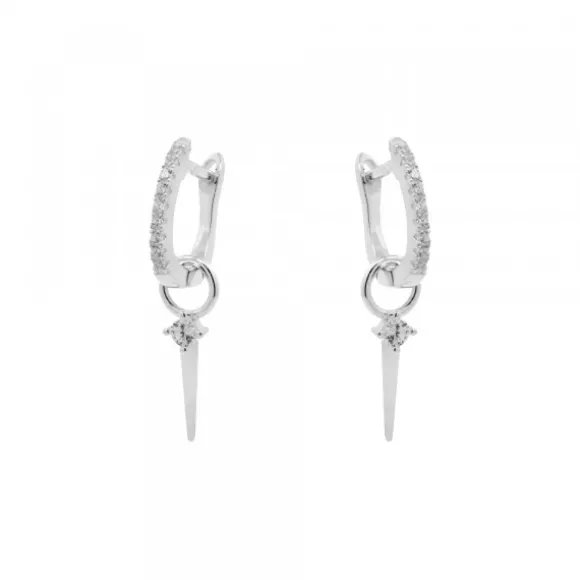 Pendientes de Aro de Plata de 1ª Ley (925mm) con circonitas blancas. Motivo de punta larga con una circonita. Medidas del diámetro del aro: 0,7mm. Medidas de la punta: 10mm de largo.