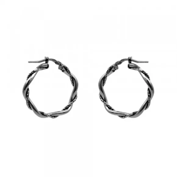 Pendientes de Aro de Plata de 1ª Ley (925mm) efecto trenzado bañado en rutenio. Cierre criolla. Diámetro del aro: 25mm.
