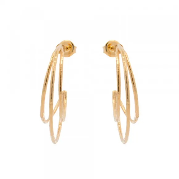 Pendientes de plata de 1ª Ley reciclada (925mm) bañados en oro de 18kt. con triple aro gallonado. Cierre presión. Diámetro pendientes: 30mm.