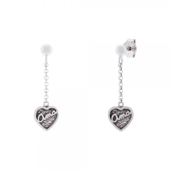 *No se admiten cambios ni devoluciones en artículos de Outlet.Pendientes de Plata de 1ª Ley (925 mm) compuesta por dos piezas. Una pieza con forma de corazón contiene la palabra «ama» en relieve en el interior. Y otra pieza en la parte superior con forma redonda, bola. Ambas se unen con una cadena de plata de tipo Rolo. Cierre presión. Medidas: Altura 30mm y Ancho 8mm.
