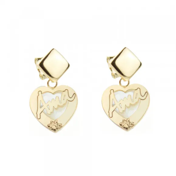Pendientes Largos Corazón Ama Plata Dorada