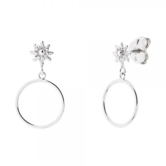 Pendientes Luna Llena largos de Plata de 1ª Ley (925mm) de dos piezas, una de plata redonda simbolizando la «Luna Llena» y la otra en la parte superior con forma Eguzkilore. Cierre presión. Medidas del pendiente: Alto 25mm y Ancho 15mm. Diámetro del Eguzkilore: 7mm.