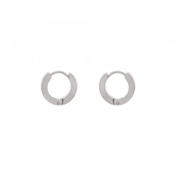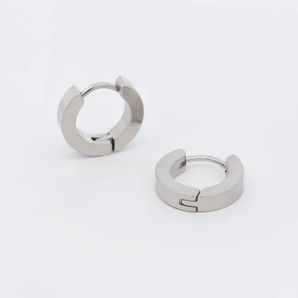 Pendientes mini de acero quirúrgico con acabado mate. Unisex. Cierre catalán. Diámetro del aro: 13mm. Ancho: 3mm.