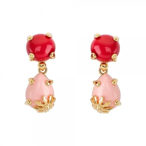 Pendientes Rania de Plata Dorada Piedras Rojas y Rosas