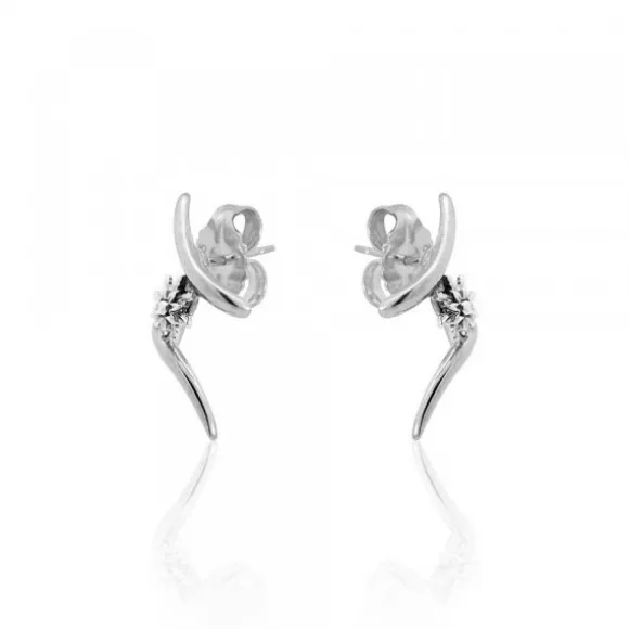 Pendientes de Plata de 1ª Ley (925mm) inspirado en la forma de un rayo con motivo Eguzkilore en la parte central de la colección Tximist. Cierre presión. Medidas: alto 28mm y ancho 14mm.
