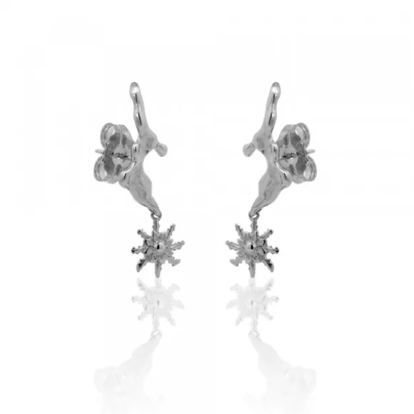 Pendientes de Plata de 1ª Ley (925mm) con motivo Eguzkilore colgante de la colección Ur. Cierre presión. Medida: alto 38mm y ancho 13mm. Diámetro Eguzkilore: 11mm.