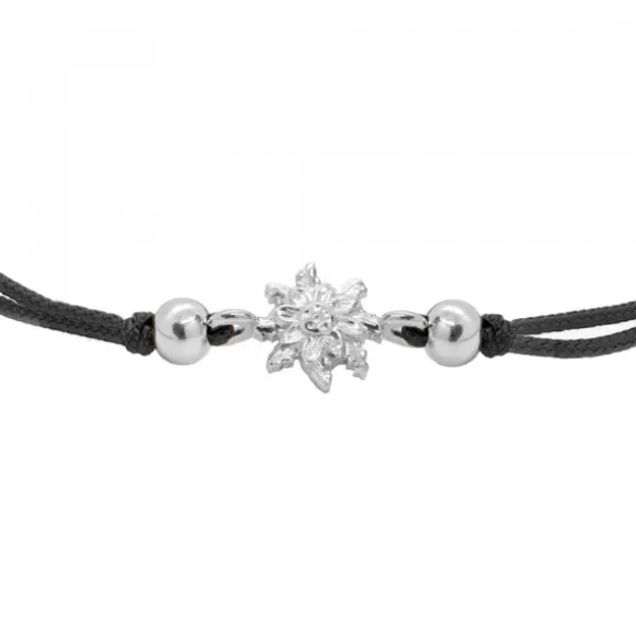 Pulsera Basic Eguzkilore de macramé de doble hilo negro con cierre de cuerdas corredizas ajustable. Contiene motivo con forma de Eguzkilore de plata de 1ª Ley (925mm) y bolitas de plata en los terminales. Diámetro de las bolitas: 4mm. Diámetro del motivo Eguzkilore: 9mm.