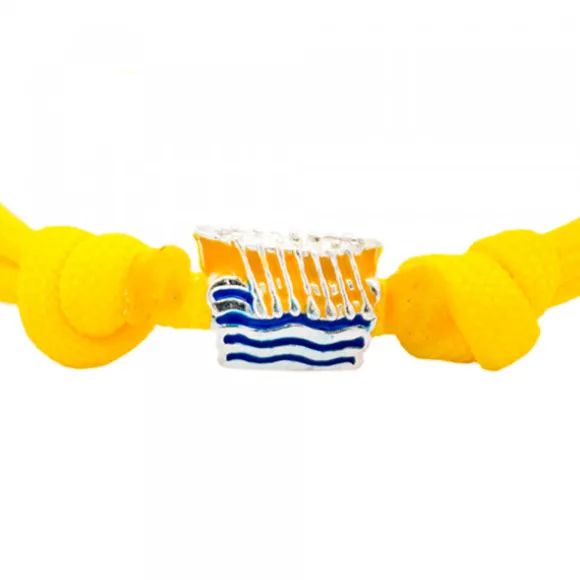 *Exclusivo OnlinePulsera de nylon amarillo con cuerdas corredizas y cierre de nudos ajustable con charm de Plata de 1ª Ley (925mm) en forma de trainera con esmaltado amarillo y azul simulando el agua. Compatible con pulseras y collares de Eguzkicharm y otras marcas. Pulsera ajustable. Medidas del charm: Alto 9mm y ancho 13mm.
