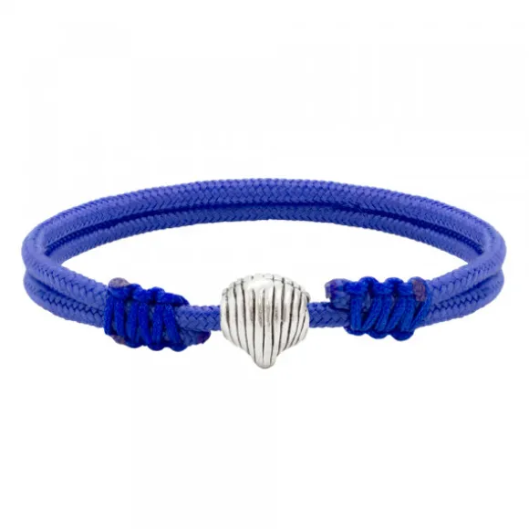 Pulsera de nylon azul con cuerdas corredizas y cierre macramé con charm en forma de concha de Plata de 1ª Ley (925mm). Diámetro Charm: alto 11mm y ancho 11mm.
