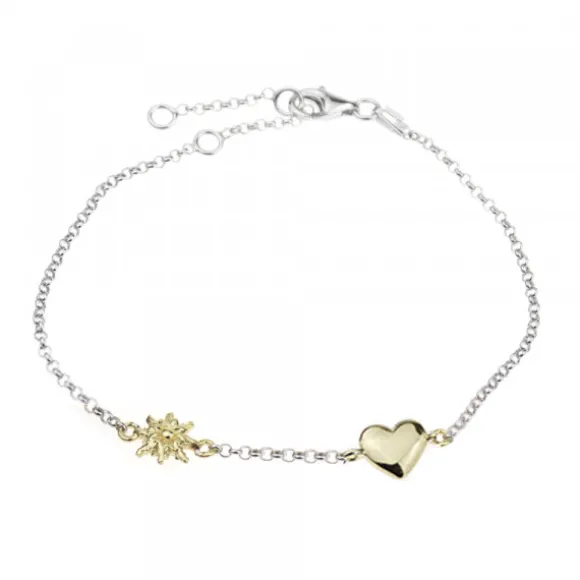 Pulsera Corazón y Eguzkilore de Plata Dorada