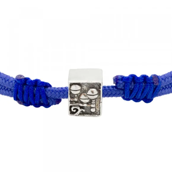 Pulsera de nylon azul con cuerdas corredizas y cierre macramé con charm de Las Farolas de La Concha de la ciudad de Donostia-San Sebastián de Plata de 1ª Ley (925mm). Diámetro Charm: 9mm.
