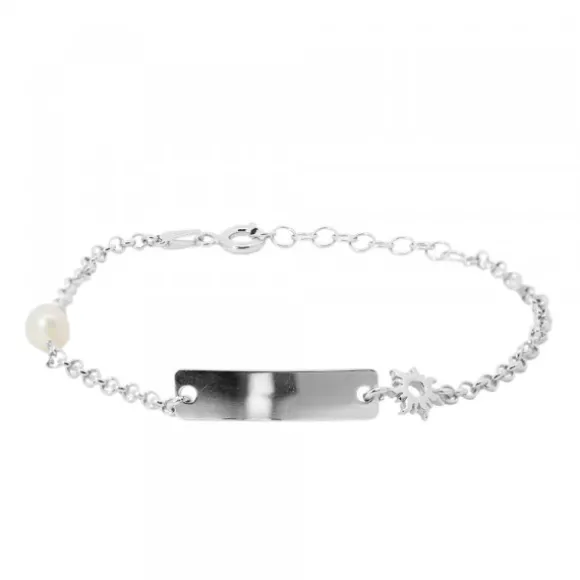 Pulsera Identidad de Plata rectangular y Perla Personalizable