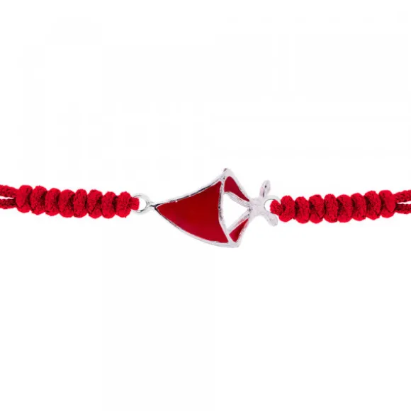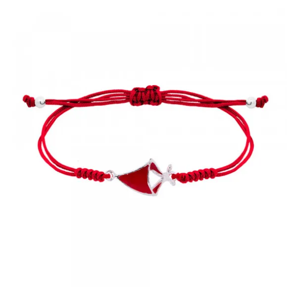 Pulsera pañuelo con esmalte rojo de San Fermín de Plata de 1ªLey (925mm) de hilo rojo con nudos y cierre de macramé para ajustarlo a diferentes medidas. En los extremos contiene bolitas decorativas de Plata de 1ªLey. Medida pulsera abierta: 23cm. Medida motivo San Fermín: alto 20mm y ancho 13mm. Diámetro bolita: 4mm.