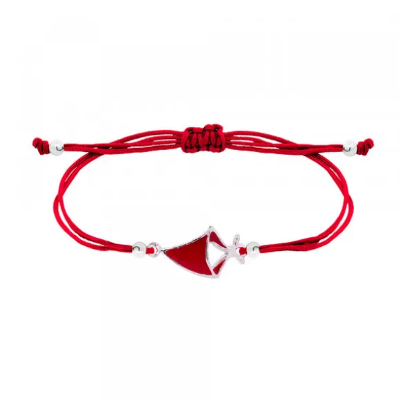 Pulsera pañuelo con esmalte rojo de San Fermín de Plata de 1ªLey (925mm) de hilo rojo con cierre de macramé para ajustarlo a diferentes medidas. En los extremos contiene bolitas decorativas de Plata de 1ªLey. Medida pulsera abierta: 23cm. Medida motivo San Fermín: alto 20mm y ancho 13mm. Diámetro bolita: 4mm.