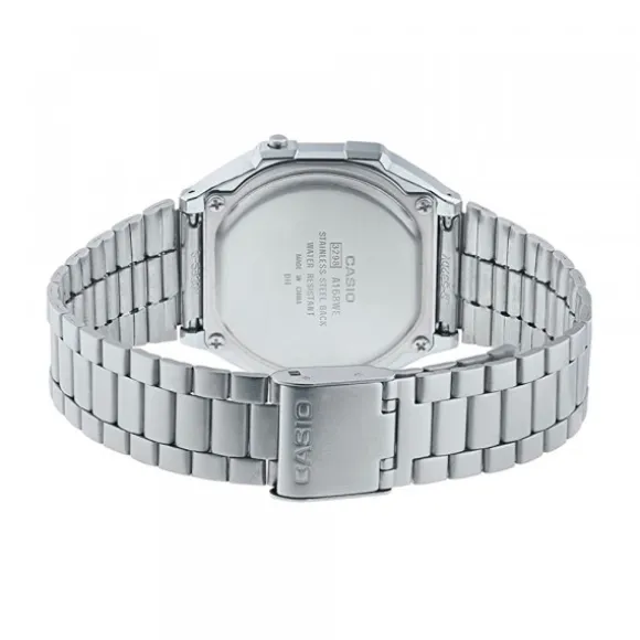 Reloj Casio A168 Series modelo A168WEM-7EF unisex. Reloj digital con panel electro-luminiscente que hace que la esfera del reloj se ilumine para una fácil lectura. La correa, de acero inoxidable, es robusta, resistente y elegante, un clásico para relojes de estilo retro con cierre ajustable para proporcionar mayor comodidad y seguridad. Funciones del reloj: alarma diaria, señal horaria, calendario automático, cronógrafo 1 HR, Hebilla ajustable, indicación de hora normal de 12/24 horas, larga duración de la pila (7 años), luz de fondo EL y resistente al agua. DImensiones: 38,6mm X 36,3mm X 9,6mm. Peso aproximado 50g. Incluye garantía y caja original de Casio.