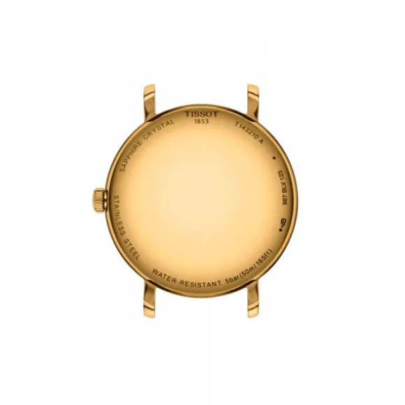 *No se admiten devoluciones en artículos de outlet.Tissot Everytime Gent es un modelo clásico de cuarzo diseñado para personas que buscan un estilo minimalista y elegante. Cuenta con un movimiento de cuarzo suizo de alta precisión con indicador de fin de vida de la batería (EOL). Tiene una caja fabricada en acero inoxidable 316L con revestimiento de PVD en oro amarillo y un diámetro de 40mm y un grosor de solo 7,1mm. El cristal, un cristal de Zafiro irrayable, que garantiza una visibilidad clara y resistencia a los arañazos a largo plazo. La esfera de color champan/dorado con índices sencillos, manteniendo una estética limpia y un brazalete de malla milanesa de acero inoxidable con acabado en oro amarillo. Es resistente al agua 5 bar (50 metros), lo que permite su uso durante la ducha o natación superficial.Modelo: T1434103302100